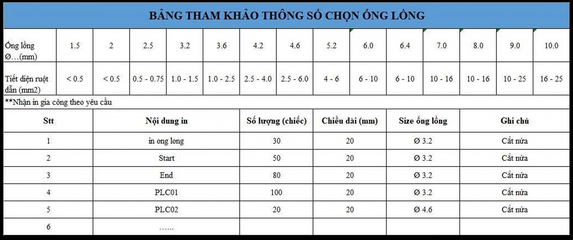 Bảng giá các loại ống lồng in đầu cốt chính hãng cho ngành tủ điện, M&E &...
